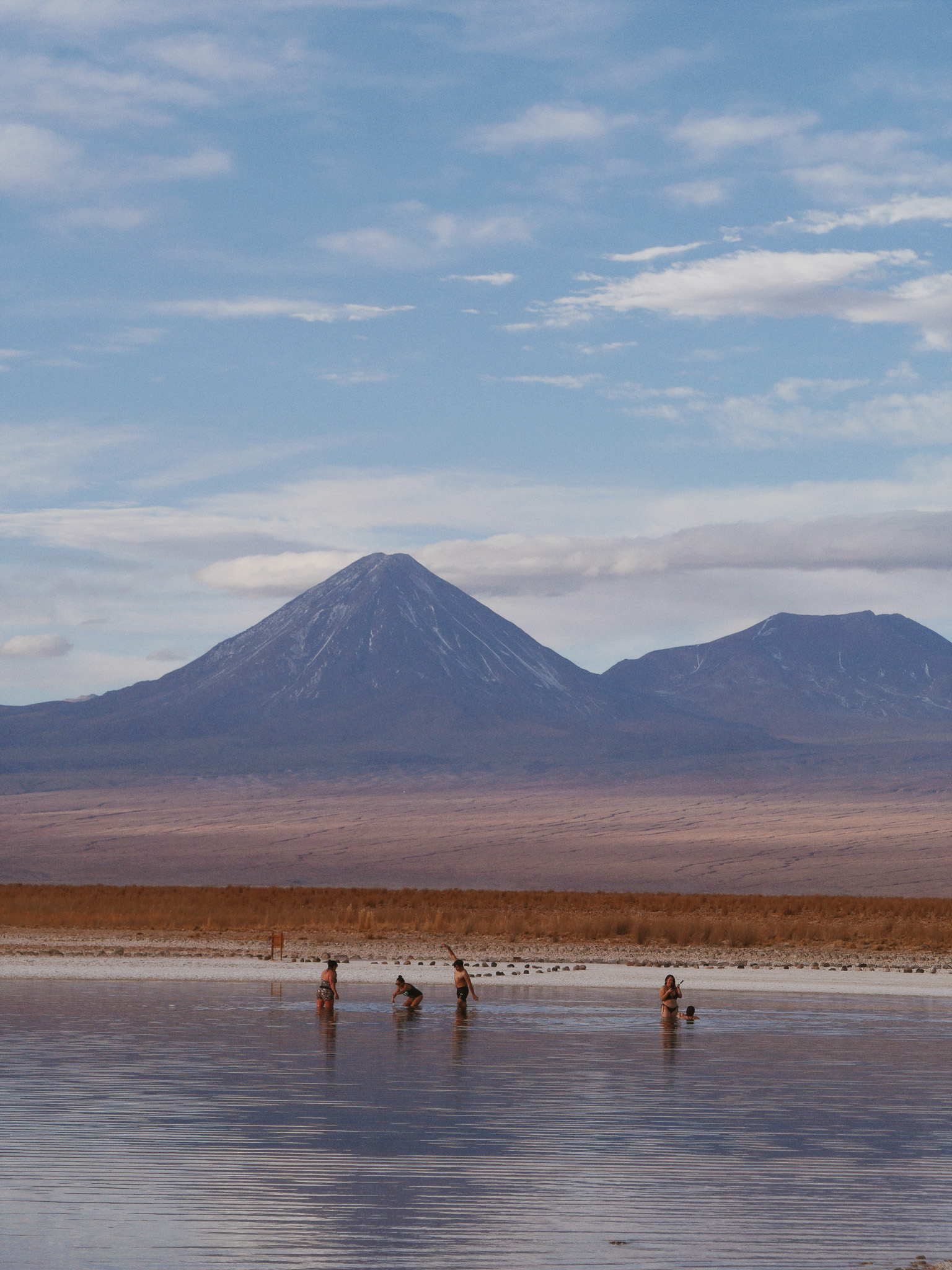 A private afternoon experience through the Atacama Salt Flat. We begin at Laguna Cejar, where the high salt concentration allows you to float effortlessly on turquoise waters. Then, we visit Ojos del Salar, two freshwater sinkholes surrounded by desert crust, and continue to Laguna Tebinquinche to admire its reflections and the silence of the Atacama landscape. Perfect for couples or families looking for comfort and flexibility. Return to San Pedro around 18:00. Entrance fee: CLP 21,000 (paid upon arrival, with discounts for students and seniors; see Cejar blog for details).